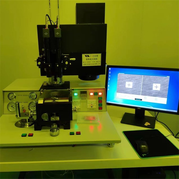 ?C-43A型光刻機9英寸精密光刻機是一款高精度的光刻設(shè)備,適用于多種應(yīng)用領(lǐng)域,包括中小規(guī)模集成電路、半導(dǎo)體元器件、光電子器件、聲表面波器件、薄膜電路和電力電子器件的研制和生產(chǎn)。這款設(shè)備具備特殊的找平機構(gòu),使其不僅適用于各種常見材料如硅片、玻璃片、陶瓷片、銅片、不銹鋼片、寶石片的曝光,還能處理非圓形基片和小型基片的曝光需求。