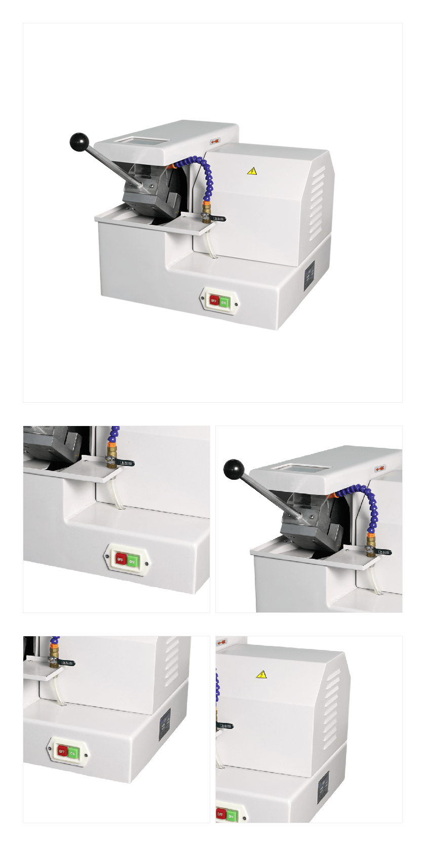 本機(jī)利用高速旋轉(zhuǎn)的薄片切割片來截取金相試樣,適宜切割較硬的金屬材料;本機(jī)有冷卻裝置,用來帶走切割時(shí)所產(chǎn)生的熱量,避免切割過程中試樣過熱,而改變組織。
